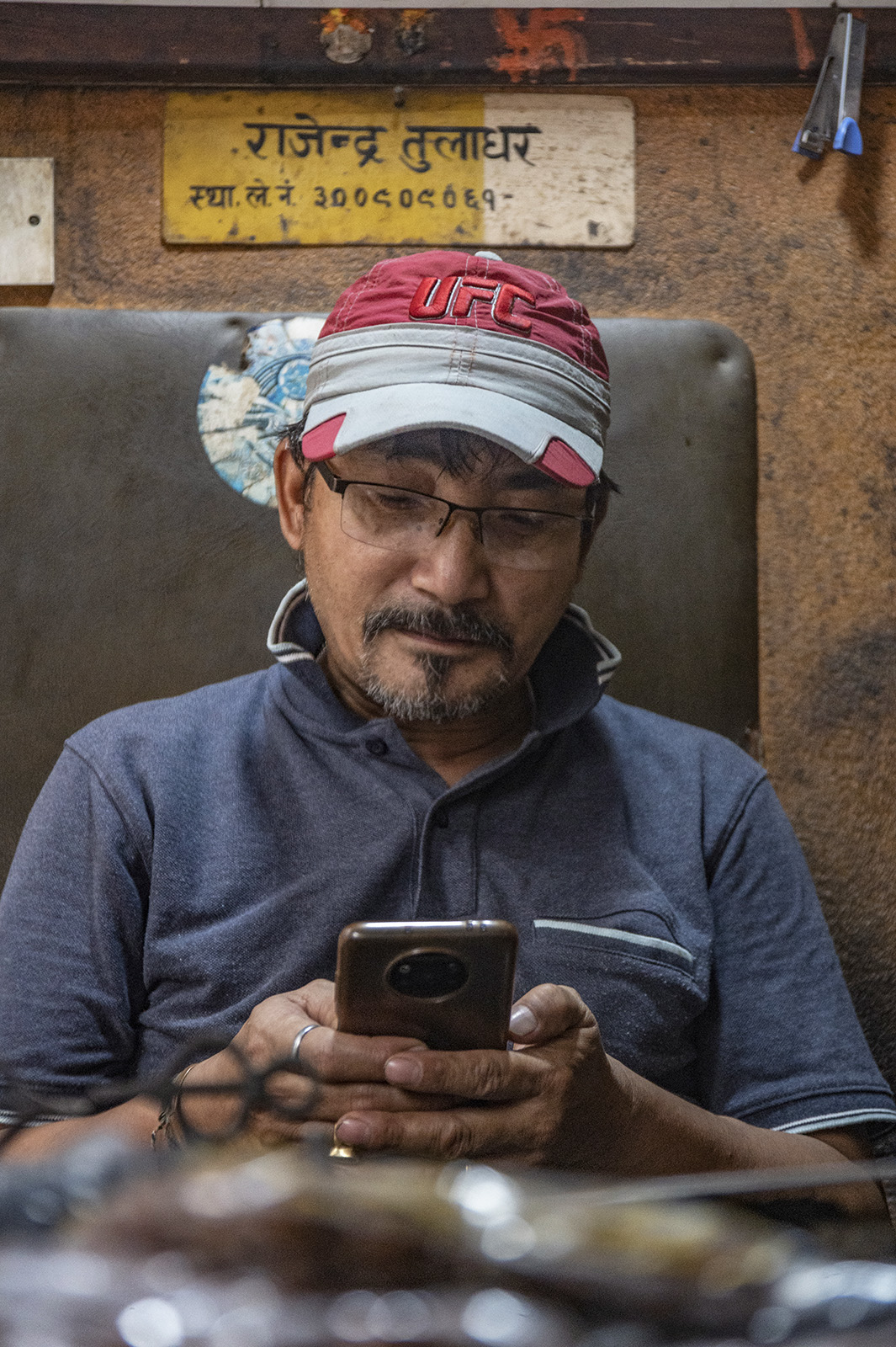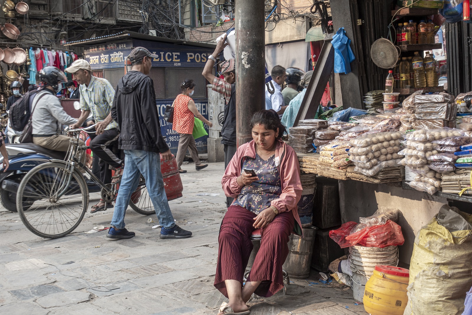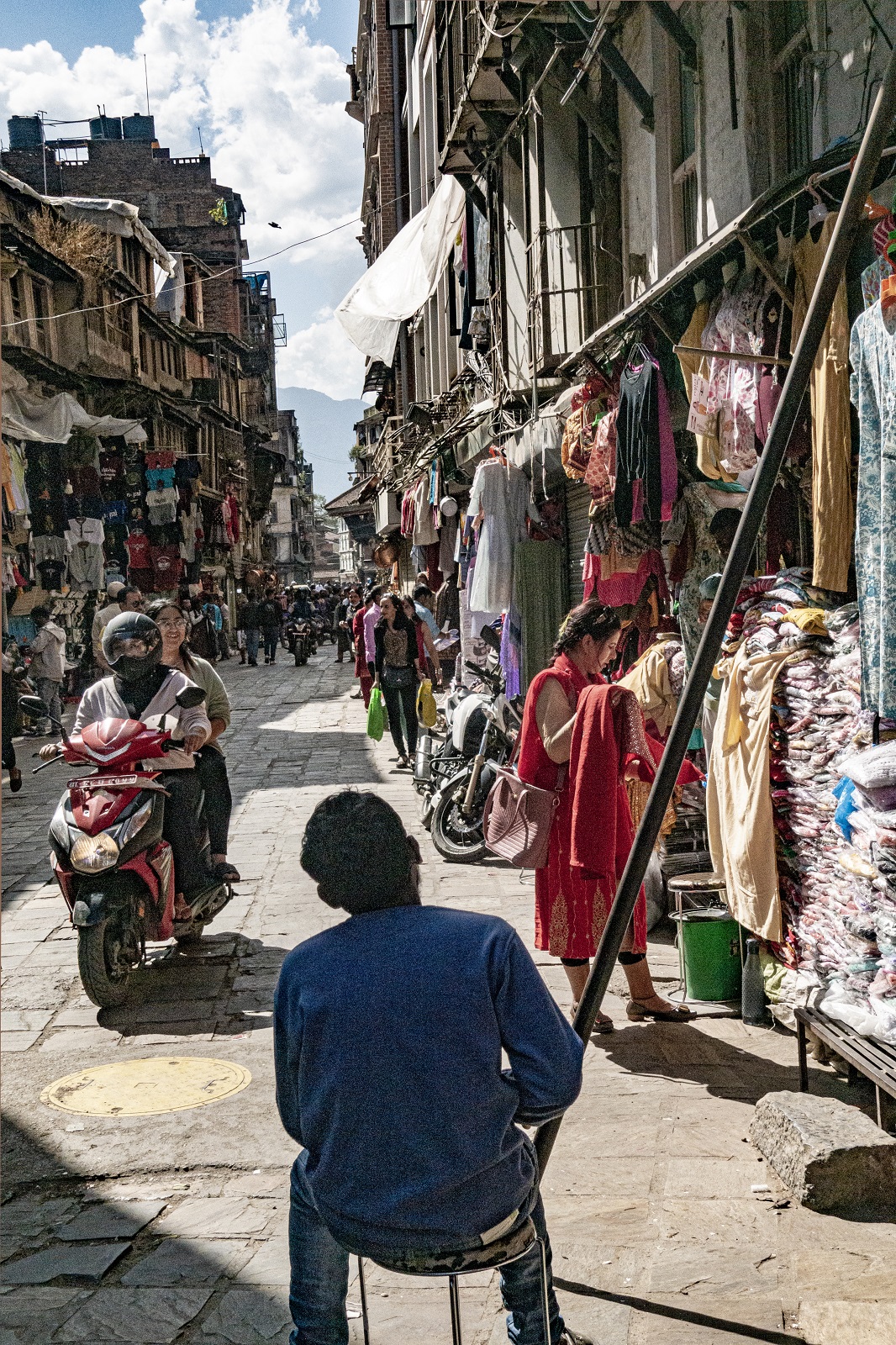 KATHMANDULD OLD TOWN Shop in hidden courtyard exposed Cop Shakedown Ricksahaw drivers in Asan Tol Listless in a jewellry shop Asan Tol (commercial centre) Butter lamps in Asan Tol Buddha on the way out - mural in Kathmandu Bouddha complex from the Tibetan temple Kali temple devotee Shopkeeper Birbal Shreshta the musician in Paknajol shop Road north out of town Father and son business City centre shop keeper enjoying the sun Misunderstood Random display Shop keeper messaging Trouble at my door Off to the United States, he said Not going anywhere - young mechanic in Paknajol Monsoon skies Keymaker Mr Insincere trying to pull you into his shop Vexed shopkeeper Paknajol waiter Bleaching flags at Bouddha Stupa Hilarious cultural exchange Asan Tol between downpours Nepalis milling around