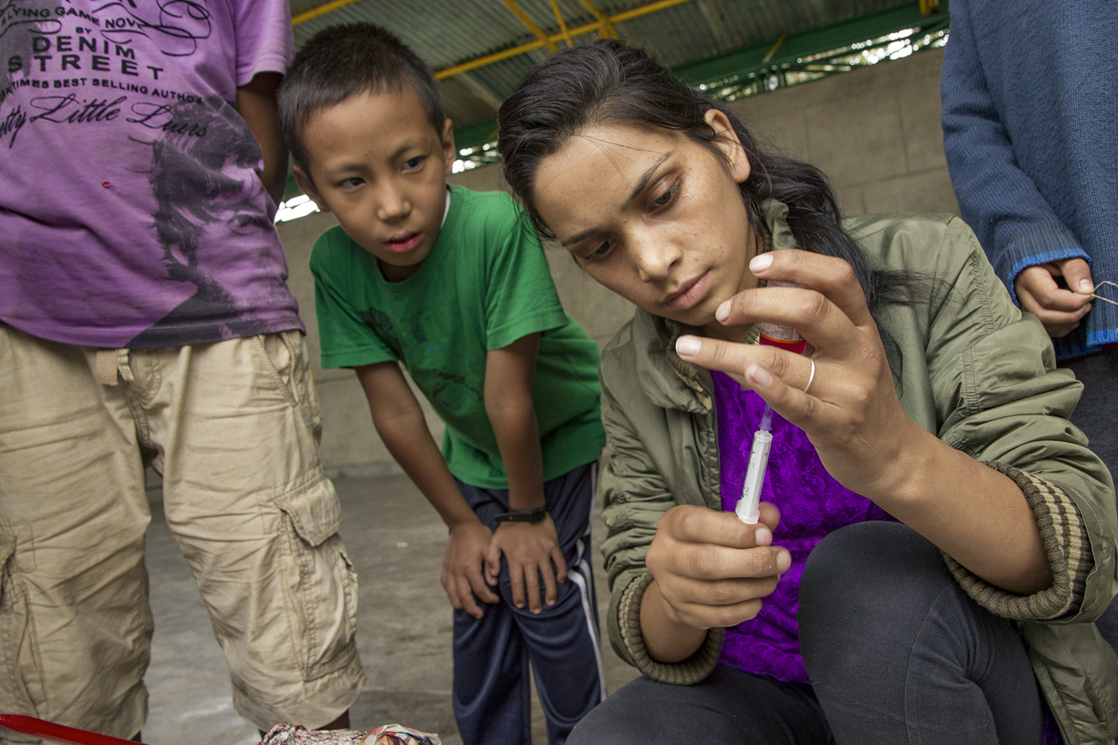 Vishnu vaccinates at TCV School 2008
